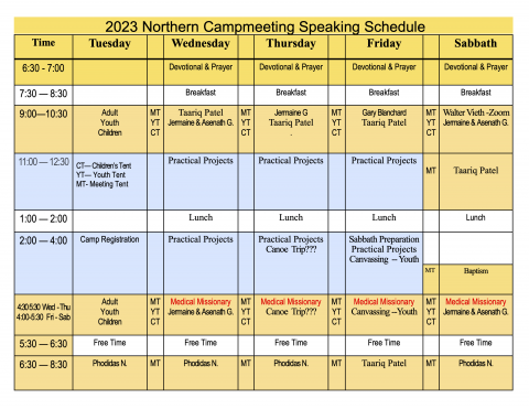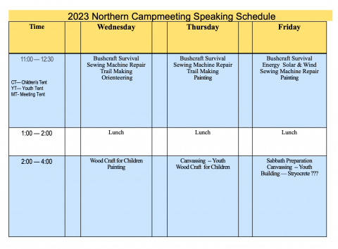 Please pray for our speakers, the Holy Spirit’s presence, safety during campmeeting, and spiritual blessings, and new friendships, try to meet someone new every day.